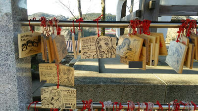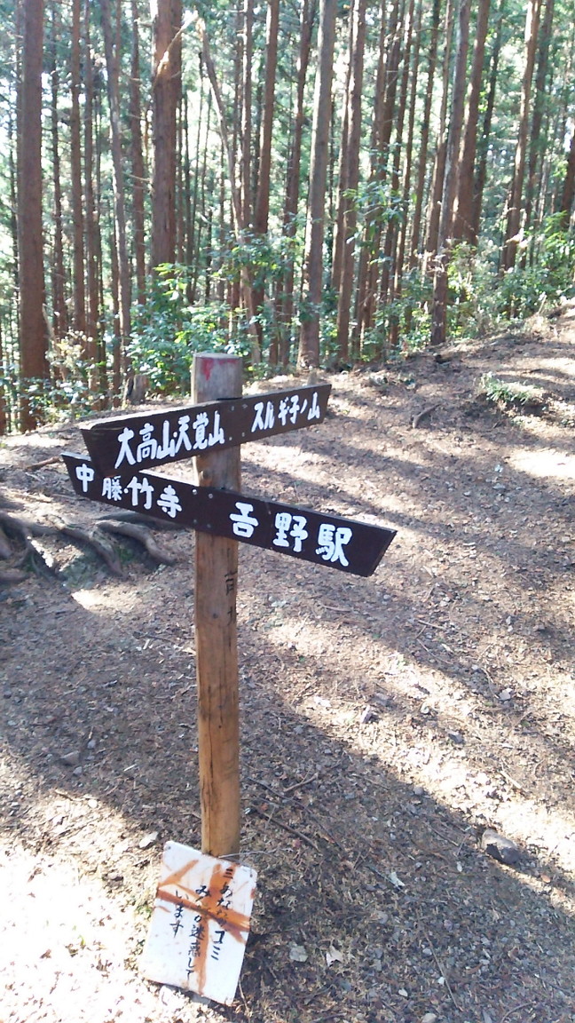 飯能アルプス縦走 登山 2015年01月11日 登録タグ:<登山> <ヤマノススメ> 今日は天気も良く飯能アルプスを縦走してきました。 まず、登山を始める前に、作っておいた痛絵馬を 観音寺に奉納しにいきます。 前に来た時よりパワーアップしてました。 特に私の左の人は9枚目とな…。愛を感じます。('◇')ゞ その後電車に乗る為に東飯能駅へ。 それに利用したのが… ラッピングバス! 車外も車内もヤマノススメだらけ。 以前乗った富士急行のヤマノススメ号よりも凄かった! 意外と人が多くて、上手く撮影できず…。 気が付くと、目の前にはここなちゃんが! 棒の嶺に登るときには、またお世話になります! そして東飯能駅から東吾野駅へ。 そこから天覚山を目指します。 まずは登山口。 普通に民家の間に存在。 途中の案内が無ければ分からないかも。 すぐに分岐。 沢筋ルートと尾根ルート。 尾根ルートは地図上では破線になってました。 破線はバラエティールートの事で、変化に富んだ険しい道だとか。 あおいちゃんは無難な沢筋ルートを選びました。 しかし、案内に小さく、尾根ルートオススメと書いてあったので 私はそっちを選択しましたw 少ししてから勾配がきつくなる。 けっこうきつい…。 すぐに稜線に出る事ができました。 すると展望がよくなり、周りを見渡せるように。 コレがオススメと書いてあった意味かな! ほどなくして、天覚山の山頂に到着しました。 眺めも抜群で、都心の高層ビル群まで見えました。 帰ってから気づきましたが、あおいちゃんがくたばって寝ていたベンチで お昼を取りました。 そして隣の大高山へ移動開始。 迷いやすい所には手書きの案内板も。ありがたい。 入ったら迷うよ~っと手作りのバリケード。 しかし、余裕はすぐ無くなってきました。 もう、数え切れないほどのアップダウンの繰り返しで、勾配も急なのです。 低山だからと舐めてたかもしれません…。 しかし、なんとか大高山に到着。 それほど広くはなかったけど、バーナーで調理してお昼を取っていた方も居ました。 ここで、今回行動食としては初めてのドライフルーツを食べました。 甘くて疲れた時には最適かもっと思いました。 ここなちゃんの体力はどこから来てるのか…。 祠もありました。 次は、最終目的の子の権現寺へ向かいます。 前坂分岐。 吾野駅へのエスケープルートとして見込んでいましたが、 時間があるので真っ直ぐ進む事に。 こんな山奥にお墓が…。 そういば、この道はバリエーションルートだった事に気付く。 さっきも大丈夫だったから、行けるだろうと見込んだのが大きな間違いだった。 はいつくばって登る坂やら、 木にしがみついて登る坂など。 いや…坂じゃない…崖だ…。 死という言葉が頭をちらつく…。 しばらくはココはトオリタクナイ…。 何の余裕も無いので、写真撮影をしてる暇なしw 片側がスパッっと切り落ちてる道もあり、気を許す暇も無し。 さっすがに疲れはて、休憩の時間も増える…。 しかし、遠くから鐘の音が。きっと目的のお寺に違いない。 道も良くなり、少しずつ足取りも軽くなってきました。 霜柱が立ってました。 見たのは何年振りだろう…。今まで相当なインドアだったんだなw そして、とうとう子の権現につきましたー! いやー長かった。しんどかった。でも… ほんとにこの気持ちです。 山に登ってる人は、誰もが分かることなんだと思います。 仁王様がお出迎え。 特大のわらじと巨大鉄下駄。 足腰に関する神仏さんが祀られてるお寺です。 今年一年の無事を祈願しました。 あとは下るだけ~。 でも吾野駅まで4.6kmだってw 帰るまでが登山! 頑張ろう! 途中で怖いかかし…。 植林したばかりのもの。 飯能市は林業が盛んなんですね。 でも、スギは…花粉が…グスッ…。 一時間ほどして駅に到着。一安心。 購入したフラッシュライトは使う機会なし。まぁそれが一番です。 しかし、本当に疲れ果てました。思ってた以上に辛かった。 その分、良い訓練にはなったかなーっと思います。 飯能アルプスとは原作でも紹介されてた山々。 興味ある人は是非とも原作も見てみて下さいね! ルート(マイマップ) https://www.google.com/maps/d/edit?mid=zQqF20Wiz5Ng.kOR6TldtFmBk ※当記事中の画像の一部はマンガ「ヤマノススメ」の画像を引用しています。作品の著作権は「(C)しろ/アース・スター エンターテイメント」に帰属します。 [0回]PR