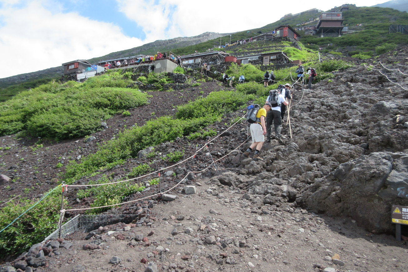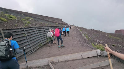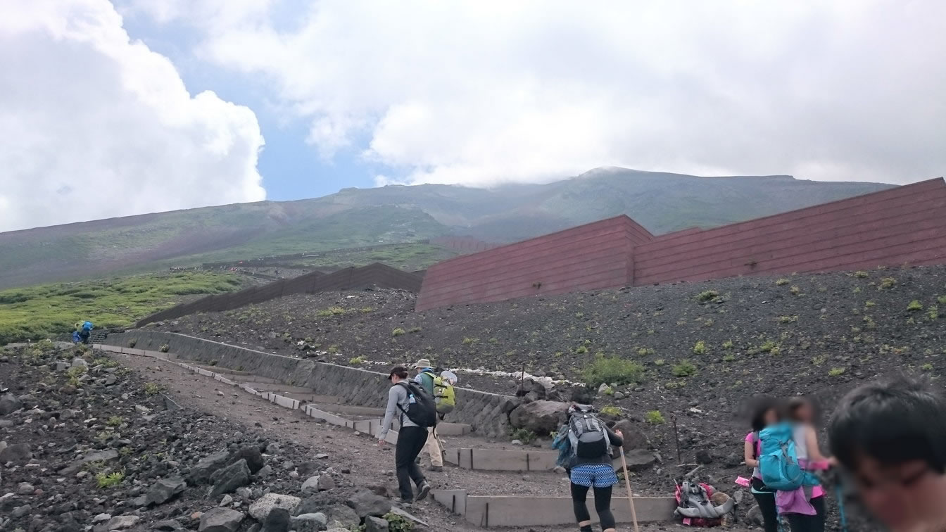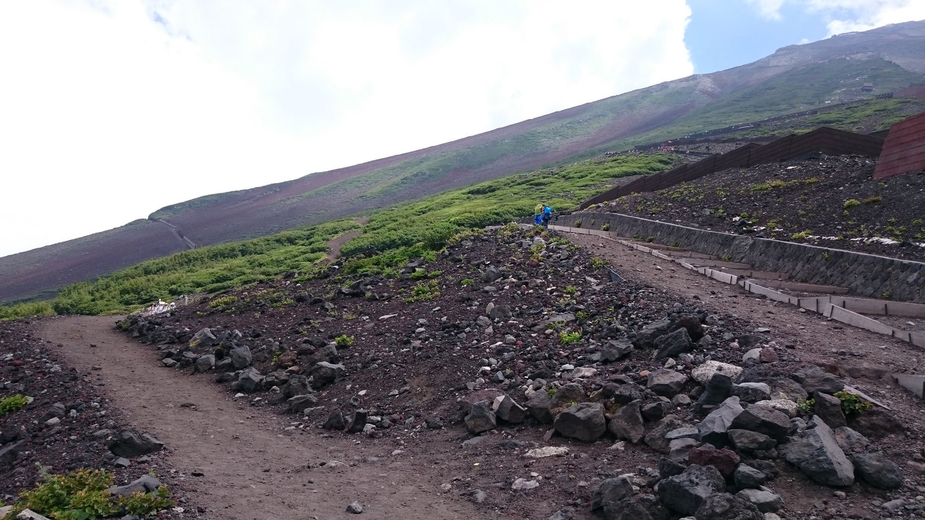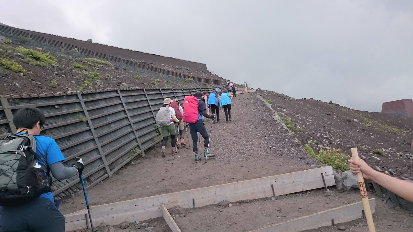 富士登山 part1 登山 2015年08月02日 登録タグ:<登山> <ヤマノススメ> <富士山> 7月末に富士山に友人と共に行ってきました。 その時の様子を数回に分けて紹介します。 まずは電車で河口湖駅へ おなじみのパネルがお出迎え。 天候は良くなく富士山は見えず。 この日は旅館で泊まり、次の朝から富士山を目指します。 夜が明けると天候は回復し、うっすらと富士山が見えました。 そして、河口湖駅からバスで富士5合目へ。 麓は真夏日でしたが、5合目では既にひんやりとしていました。 ですが、雲の中で景色は良くなかったのが残念。 体を高度に鳴らす為、ココで1時間ほど休憩しました。 平日にも関わらずにすごい人。 日本人より外国人の観光客が多いのが印象的でした。 ヤマノススメで見た事がある建物が並び、テンションも上がってきました。 お馬さんも絶賛稼働中。 5合目にある神社ではヤマススの絵馬も。 食事を摂ってから、いよいよ出発です。 登山口の様子。気分が高まってきます。 6合目までの道は広く勾配も緩く歩きやかったです。 曇ってるせいで、河口湖や山中湖なども見えず。 登山道の分岐点。左に行くと遠回りなので、右へ。 落石から身を守るためのトンネル。あと少しで6合目。 6合目に到着! 6合目の様子。 登山道を見上げると7合目の山小屋も確認できます。 しばらく休憩して出発。 6合目の上から。 しばらくは同じような道が続きます。 7合目の花小屋が、近くに見えてきました。 7合目手前の様子。 この辺りから登山道が岩場になります。 この時はみんな元気だったのですが…。 次回につづく! [0回]PR