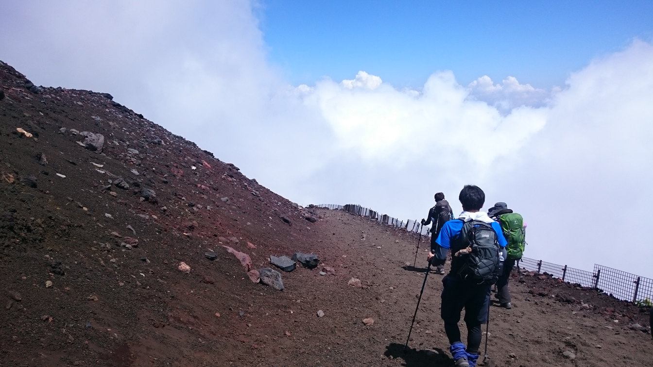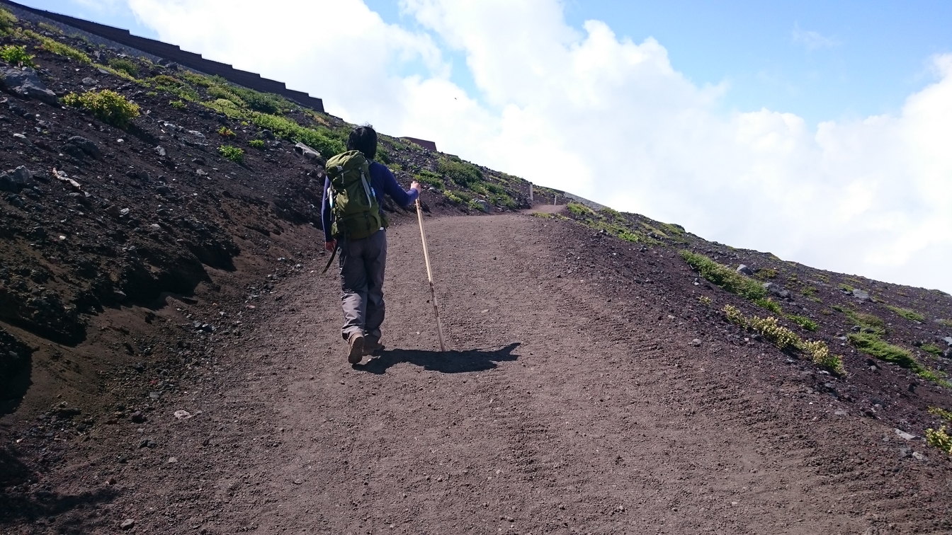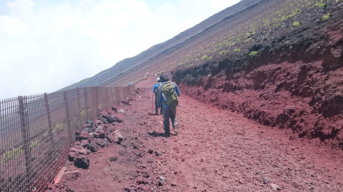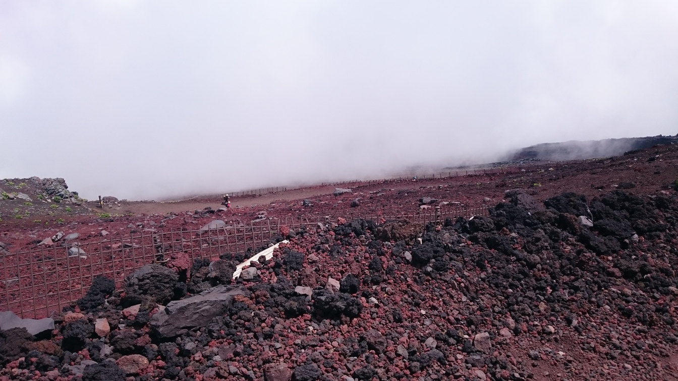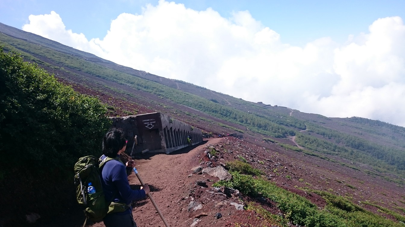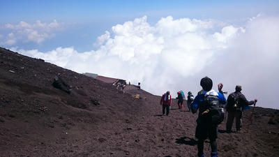 富士登山 part5 登山 2015年08月30日 登録タグ:<登山> <ヤマノススメ> <富士山> 前回のつづき お鉢巡りも終え、後は下山あるのみ。 吉田ルートは雲に覆われています。 高山病で休んでいたHさんと合流に、山小屋を出発です。 下りはブルドーザー用の砂利道をひたすら下る事になります。 先ほどの頂上です。サヨナラです。 雲が時々襲ってきます。コレが涼しくて気持ち良い。 っというのも、頂上は確かに気温は低いですが、 直射日光は超きついんで、日差しを遮ってくれる雲はありがたい。 帽子は必須でしたね。 大きな岩がゴロリ。 こんなのに当たったら一瞬でお陀仏ですね。 昨日宿泊した御来光館と、富士山ホテルが見えてきました。 特に8合目の富士山ホテルは下山道のルート上でもあるので、 そこで一度、大きな休憩を入れる事にします。 かなり砂埃も舞うので、マスクやタオルで口を塞ぐことをオススメします。 ブルドーザーが登ってきました。 山小屋に物資を届けるためですね。コレは頂上行ですね。 砂埃がひどい…ゴホゴホッ! やっと8合目の山小屋です。 きつい直射日光と、変わらない景色と、砂堀で疲労たっぷり。 長い休憩を取って出発です。 ただ、目安の時間を倍ほどかけてますので、ペースが気になるところ。 高度を下げれば高山病が和らぐと思うのですが、今のところは変わらずです。 少しすると次の山小屋が。ココが下山道最後の山小屋となります。 この辺りで須走ルートと分岐するので、気を付けましょう。 またブルドーザーが来ました。今日は頻繁に見ます。 ルートの分岐点です。吉田ルートは黄色。須走ルートは赤です。 よって右へ向かいます。 かなり降りてきたように思えますが、まだ半分も進んでいません…。 つづら折りの道がひたすら続く。 休憩の回数が増えます。Hさんの為を思って取ってたのですが、 徐々に自分の余裕も無くなってきました。 傾斜のきつい所はジグザグに降ります。 何やら施設が見えます。避難所ですかね。 ココでようやく半分くらいでしょうか…。 この頃から足の裏に痛みを感じ始めます。 長時間立っている事悲鳴を上げ始めました。ヤバイ…。 しかも、このペースでは後、2時間以上はかかると思われ。 イヤな予感しかしなくなります。 相変わらずの道が続きます。 緑が見えてきました。高度が低くなってきた証拠です。 そして、7合目のトイレがあったのですが、 写真を撮り忘れていました。 ココでついに自分の足が逝ってしまったので、 仲間を先へ行かせます。 体力自体は残ってるので、すぐに追いつけるはず。 出来るだけ立ってる時間を少なくさせたい。 やっとつづら折りの最終地点です。 この辺りで仲間と合流。 ですが、6合目まではまだ距離が…。もどかしい。 6合目が見えてますが、まだまだ遠い。ひぇぇ…。 ホントはこの中を通りらなければいけないのですが…。 ボロボロの体でこの階段は死んじゃうので、外を歩いてしまいました。 皆さんはちゃんと中を通って下さいね。 久々の森の中の道です。 6合目の近くまできました。 吉田ルートの登りルートです。すごい人。 登りルートとの合流地点。 6合目まで戻ってきました。 ここからは登りと下りで同じ道を通ります。 ここまでくれば、あと少しです。 結局今日も富士五湖を拝めず…。残念でした。 あの上から降りてきました。頑張りました。 そして、5合目到着! 皆さんお疲れさまでした! Hさんの体調もいつのまにか回復してました。高山病って不思議です。 富士山は山小屋もたくさんあり、人も多く、安心して登山はできますが、 長い登山になる事を覚悟して登らなければなりません。 その代わり、頂上では、晴れていれば絶景を見る事が出来ます。 頑張ってみる価値はあると思いますので、 しっかりと準備してから登りましょう。 今回は友人Iさんのカメラで撮ったものも多数掲載させて頂きました。 ありがとうございました。 これで富士登山の記事は終了です。 ご愛読ありがとうございました! [2回]PR