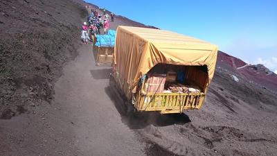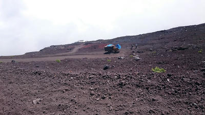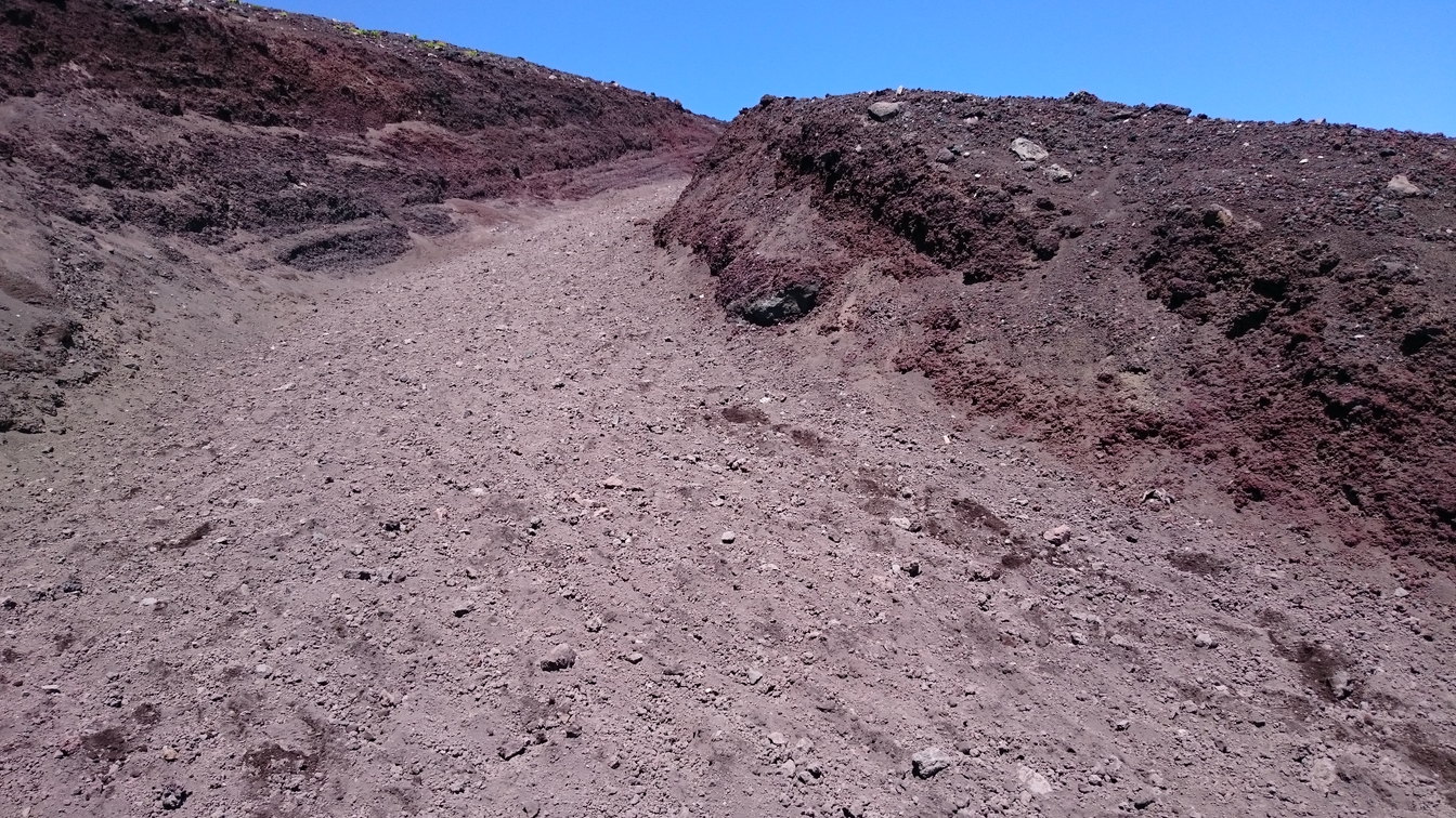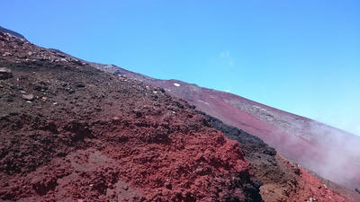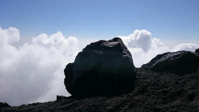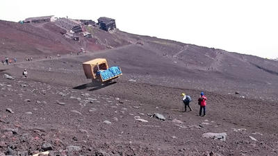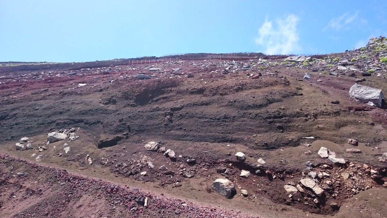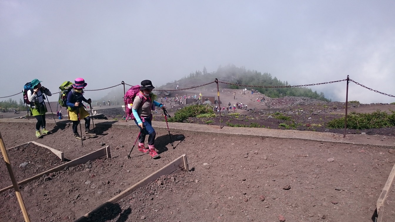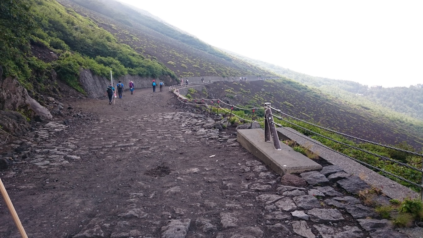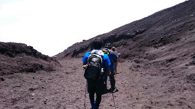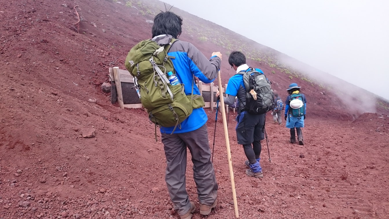 富士登山 part5 登山 2015年08月30日 登録タグ:<登山> <ヤマノススメ> <富士山> 前回のつづき お鉢巡りも終え、後は下山あるのみ。 吉田ルートは雲に覆われています。 高山病で休んでいたHさんと合流に、山小屋を出発です。 下りはブルドーザー用の砂利道をひたすら下る事になります。 先ほどの頂上です。サヨナラです。 雲が時々襲ってきます。コレが涼しくて気持ち良い。 っというのも、頂上は確かに気温は低いですが、 直射日光は超きついんで、日差しを遮ってくれる雲はありがたい。 帽子は必須でしたね。 大きな岩がゴロリ。 こんなのに当たったら一瞬でお陀仏ですね。 昨日宿泊した御来光館と、富士山ホテルが見えてきました。 特に8合目の富士山ホテルは下山道のルート上でもあるので、 そこで一度、大きな休憩を入れる事にします。 かなり砂埃も舞うので、マスクやタオルで口を塞ぐことをオススメします。 ブルドーザーが登ってきました。 山小屋に物資を届けるためですね。コレは頂上行ですね。 砂埃がひどい…ゴホゴホッ! やっと8合目の山小屋です。 きつい直射日光と、変わらない景色と、砂堀で疲労たっぷり。 長い休憩を取って出発です。 ただ、目安の時間を倍ほどかけてますので、ペースが気になるところ。 高度を下げれば高山病が和らぐと思うのですが、今のところは変わらずです。 少しすると次の山小屋が。ココが下山道最後の山小屋となります。 この辺りで須走ルートと分岐するので、気を付けましょう。 またブルドーザーが来ました。今日は頻繁に見ます。 ルートの分岐点です。吉田ルートは黄色。須走ルートは赤です。 よって右へ向かいます。 かなり降りてきたように思えますが、まだ半分も進んでいません…。 つづら折りの道がひたすら続く。 休憩の回数が増えます。Hさんの為を思って取ってたのですが、 徐々に自分の余裕も無くなってきました。 傾斜のきつい所はジグザグに降ります。 何やら施設が見えます。避難所ですかね。 ココでようやく半分くらいでしょうか…。 この頃から足の裏に痛みを感じ始めます。 長時間立っている事悲鳴を上げ始めました。ヤバイ…。 しかも、このペースでは後、2時間以上はかかると思われ。 イヤな予感しかしなくなります。 相変わらずの道が続きます。 緑が見えてきました。高度が低くなってきた証拠です。 そして、7合目のトイレがあったのですが、 写真を撮り忘れていました。 ココでついに自分の足が逝ってしまったので、 仲間を先へ行かせます。 体力自体は残ってるので、すぐに追いつけるはず。 出来るだけ立ってる時間を少なくさせたい。 やっとつづら折りの最終地点です。 この辺りで仲間と合流。 ですが、6合目まではまだ距離が…。もどかしい。 6合目が見えてますが、まだまだ遠い。ひぇぇ…。 ホントはこの中を通りらなければいけないのですが…。 ボロボロの体でこの階段は死んじゃうので、外を歩いてしまいました。 皆さんはちゃんと中を通って下さいね。 久々の森の中の道です。 6合目の近くまできました。 吉田ルートの登りルートです。すごい人。 登りルートとの合流地点。 6合目まで戻ってきました。 ここからは登りと下りで同じ道を通ります。 ここまでくれば、あと少しです。 結局今日も富士五湖を拝めず…。残念でした。 あの上から降りてきました。頑張りました。 そして、5合目到着! 皆さんお疲れさまでした! Hさんの体調もいつのまにか回復してました。高山病って不思議です。 富士山は山小屋もたくさんあり、人も多く、安心して登山はできますが、 長い登山になる事を覚悟して登らなければなりません。 その代わり、頂上では、晴れていれば絶景を見る事が出来ます。 頑張ってみる価値はあると思いますので、 しっかりと準備してから登りましょう。 今回は友人Iさんのカメラで撮ったものも多数掲載させて頂きました。 ありがとうございました。 これで富士登山の記事は終了です。 ご愛読ありがとうございました! [2回]PR